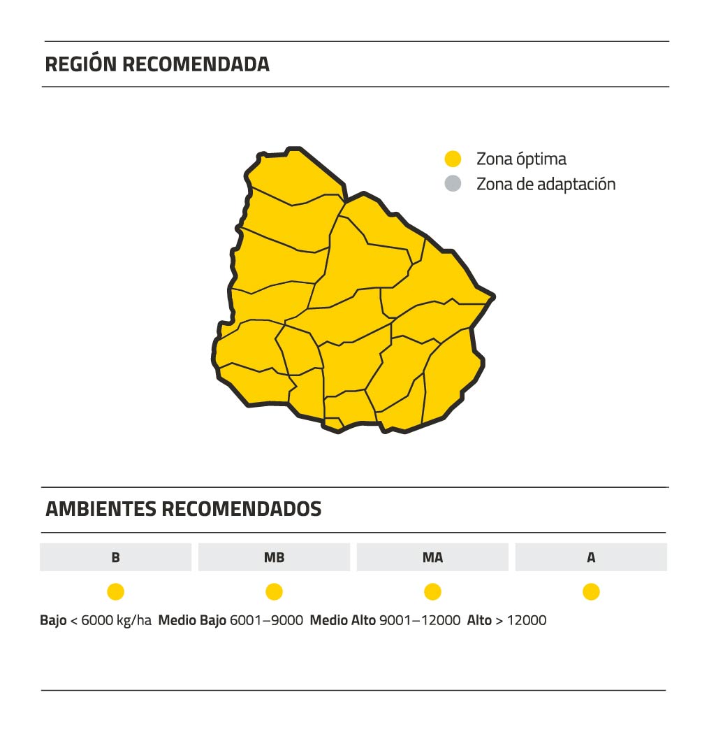 Los valores informados corresponden a datos promedios obtenidos en los ensayos multiambientales llevados a cabo por Nidera Semillas en las campañas 2014/15 a 2019/20. Dichos valores podrán verse modificados en función de las condiciones climáticas, manejo agronómico, niveles de tecnología aplicada, fecha de siembra utilizada, entre otros.