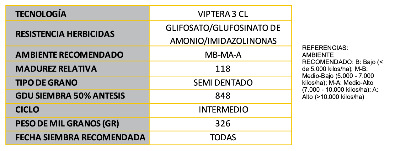 Híbrido de excelente performance en ambas fechas de siembra en todas las regiones productivas. Único material del mercado que combina la mejor biotecnología para el control de insectos, con tres herramientas para el control de malezas.